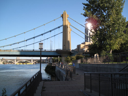 St. Anthony Falls is a popular spot because it is the only true waterfall that exists on the Mississippi River. But Minnehaha Falls is even more popular. The famous poet Henry Wadsworth Longfellow wrote about the falls in his poem "The Song of Hiawatha".